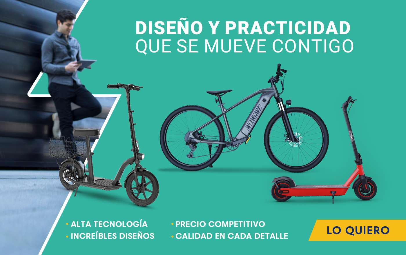 La variedad de scooters y bicicletas E-Trust ofrece soluciones de transporte ecológicas y eficientes que mejoran tu forma de moverte en la ciudad. Descubre nuestra amplia gama de productos y transforma la forma en que experimentas la movilidad urbana.